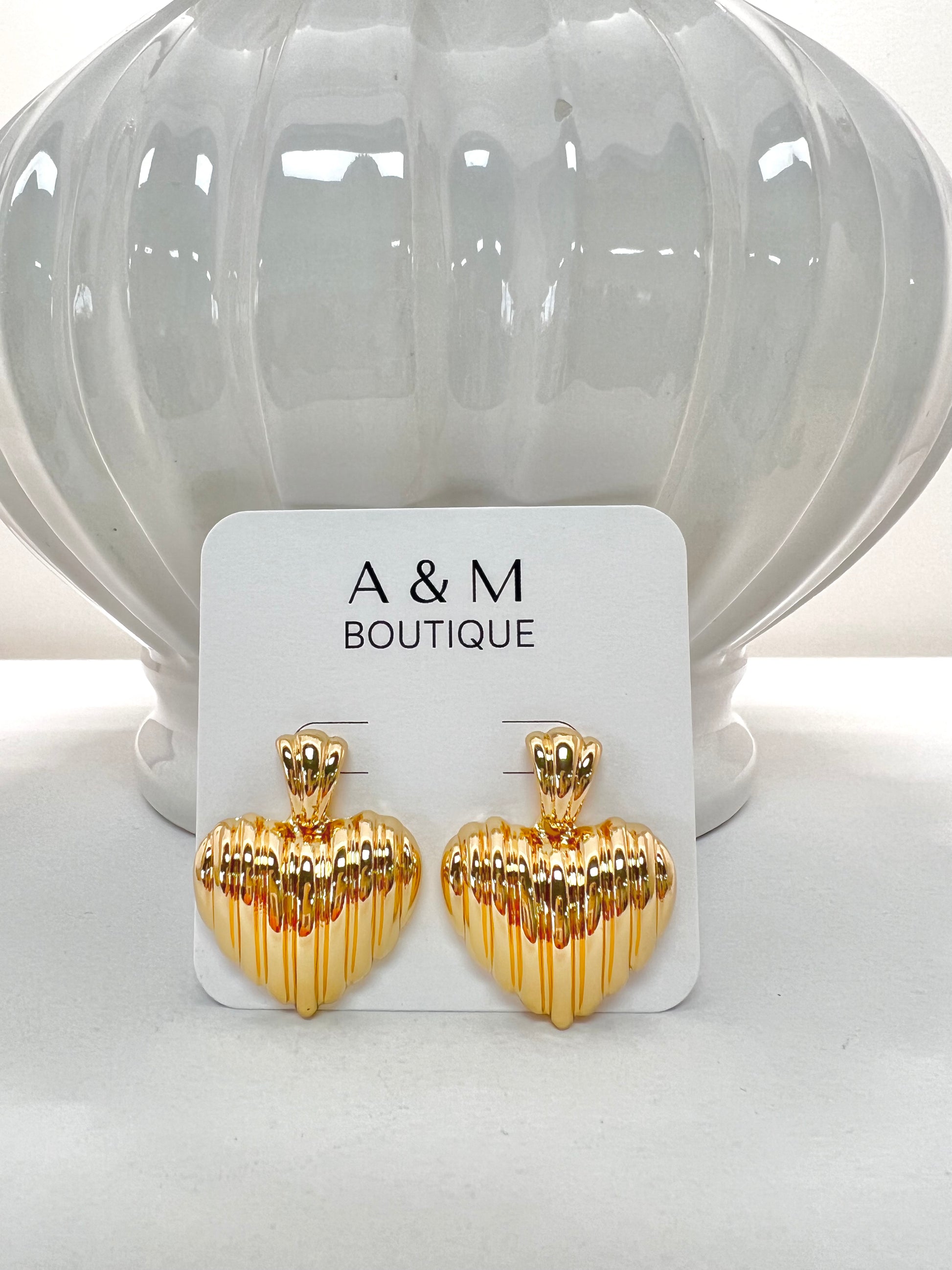 Expertly crafted with textured bold hearts, these Brynn Heart Earrings add a touch of sophistication to any outfit. Made with 14 karat gold plating, they are a timeless addition to your jewelry collection. Elevate your style with these elegant earrings.