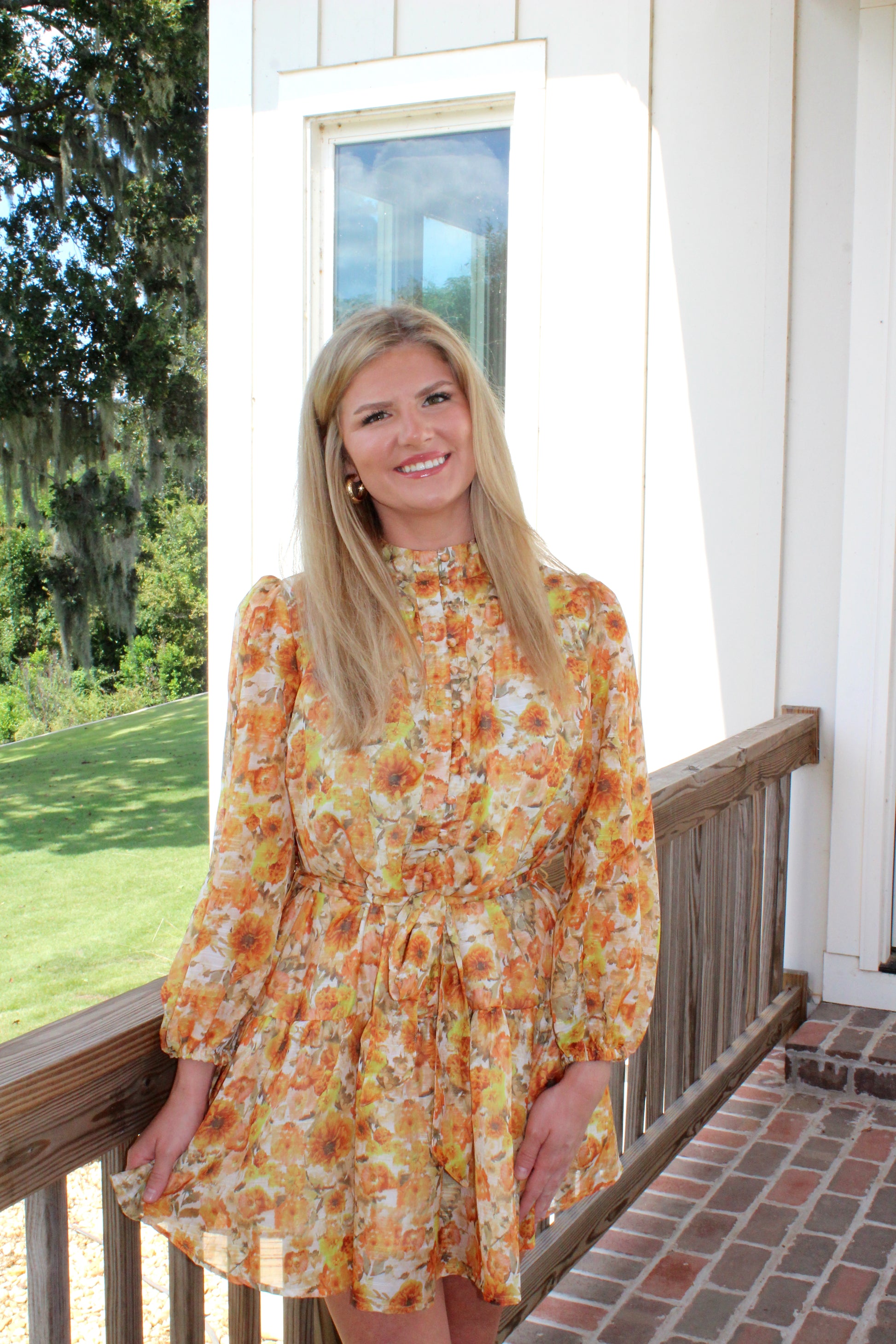 Introducing the Emmie Floral Flounce Dress - a must-have for any fashion-forward woman. Featuring a stunning floral print, a high mock neck with covered buttons, and a flounce and belt for added elegance and femininity. This dress is the perfect blend of style and sophistication, making it a versatile and timeless addition to any wardrobe.