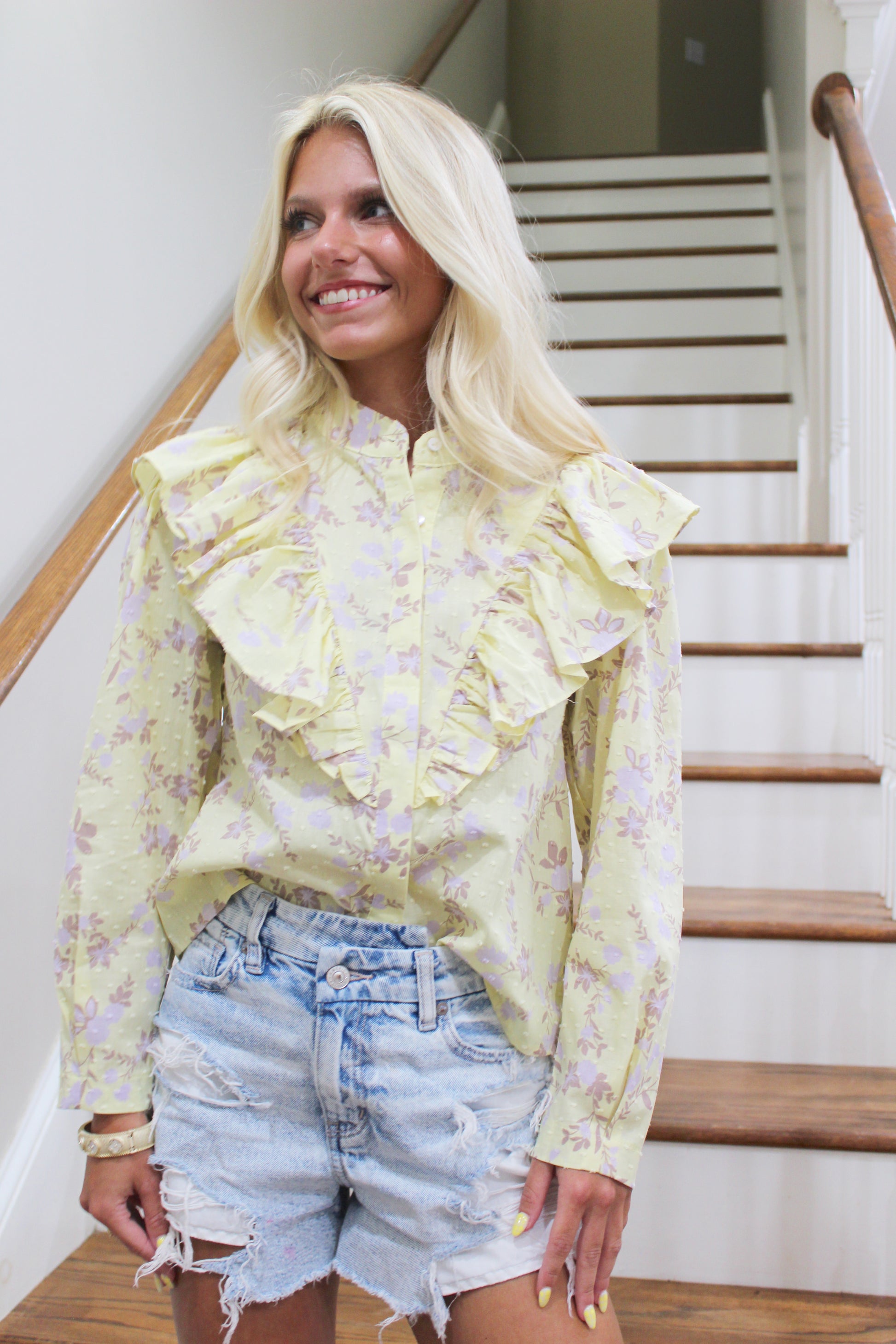 Experience effortless elegance in our Floral Paige Top. With long sleeves, delicate floral print, and charming ruffle details, this top is perfect for any occasion. Made with high-quality material, it offers not just style but comfort. Elevate your wardrobe with this must-have piece.