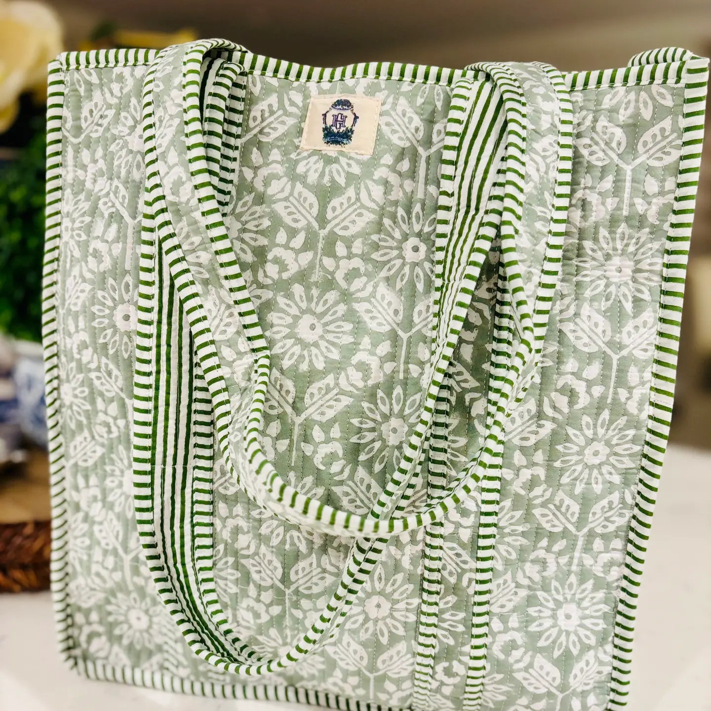 Our Heart of Grace Quilted Tote Collection will be a new customer favorite! These are hand quilted and crafted in India using block printing.