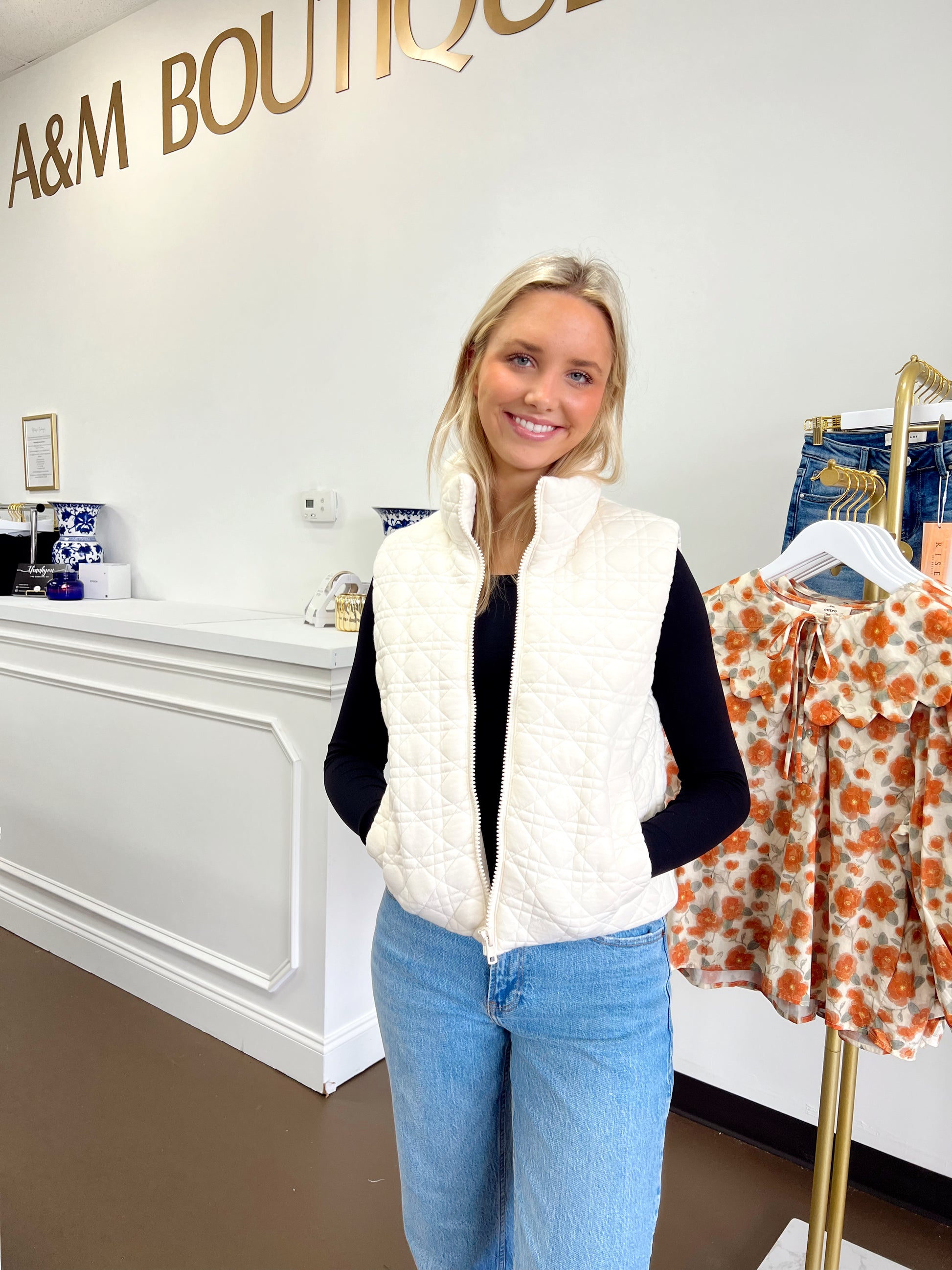 This quilted vest is expertly crafted from durable materials and designed for both comfort and style. The quilted pattern adds texture and dimension, while the pockets provide functionality. Perfect for layering and keeping you warm during chilly seasons.