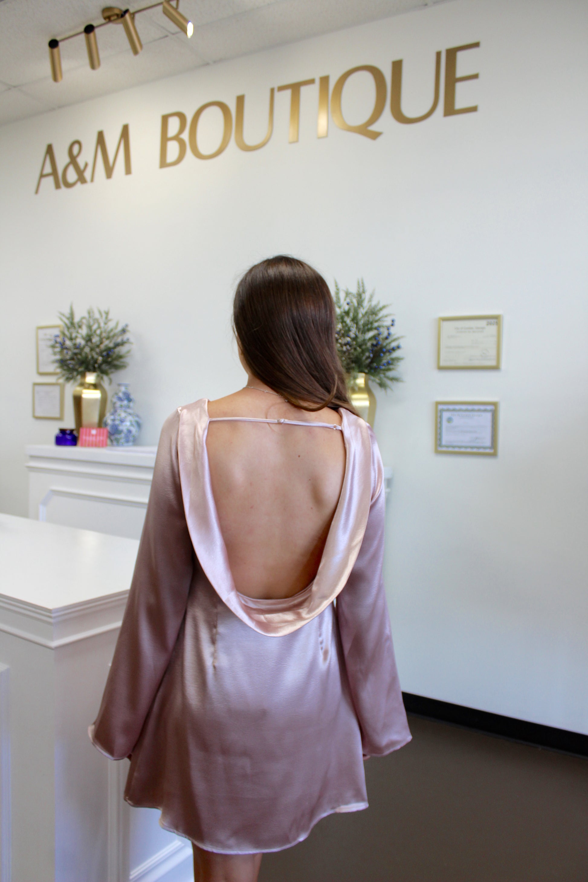 The Karli Satin Dress features elegant long blouse sleeves and a stylish open back, making it a charming choice for any special occasion. Its graceful design offers both comfort and sophistication, ensuring you feel confident and beautiful wherever you go. Perfect for celebrations, this dress combines classic elements with a modern twist to enhance your wardrobe.