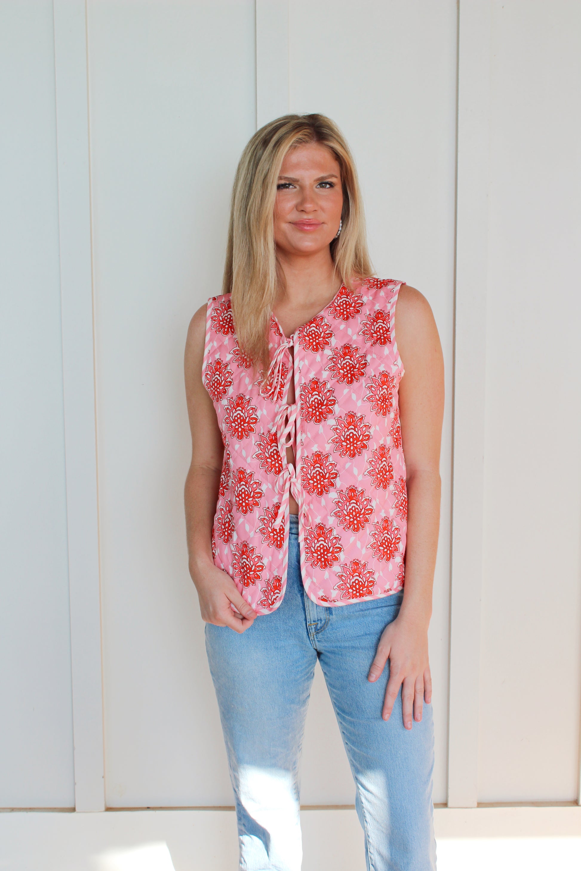 Introducing the London Floral Quilted Vest - a must-have for any fashion-forward wardrobe! With its cute floral print, sleeveless design, and front bow ties, this jacket is both fashionable and functional. Its quilted construction provides warmth while maintaining a nice, casual look. Upgrade your style with this versatile vest.