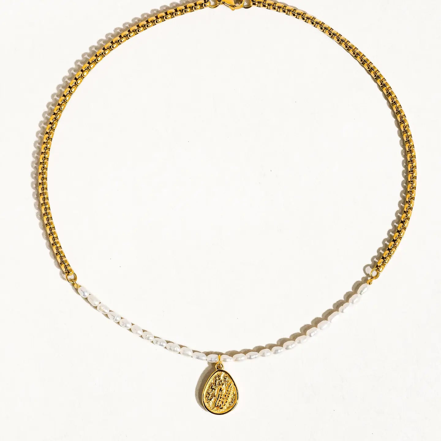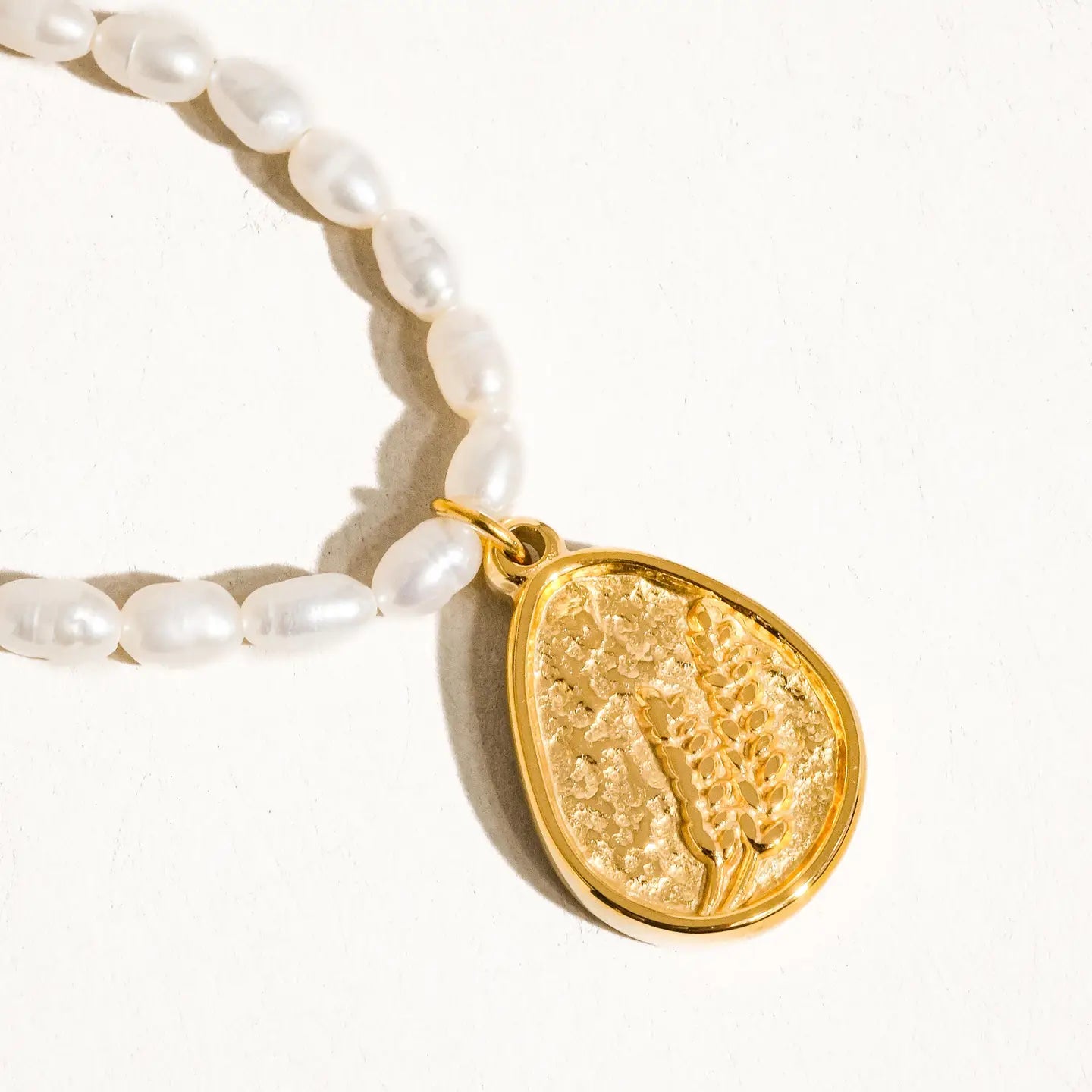 18K Gold Non-Tarnish Pearl Wheat Pendant Necklace 18K Gold Plating Stainless Steel Freshwater Pearl Pendant Size (inch): 0.8 x 0.6 Chain Length (inch): 18.5