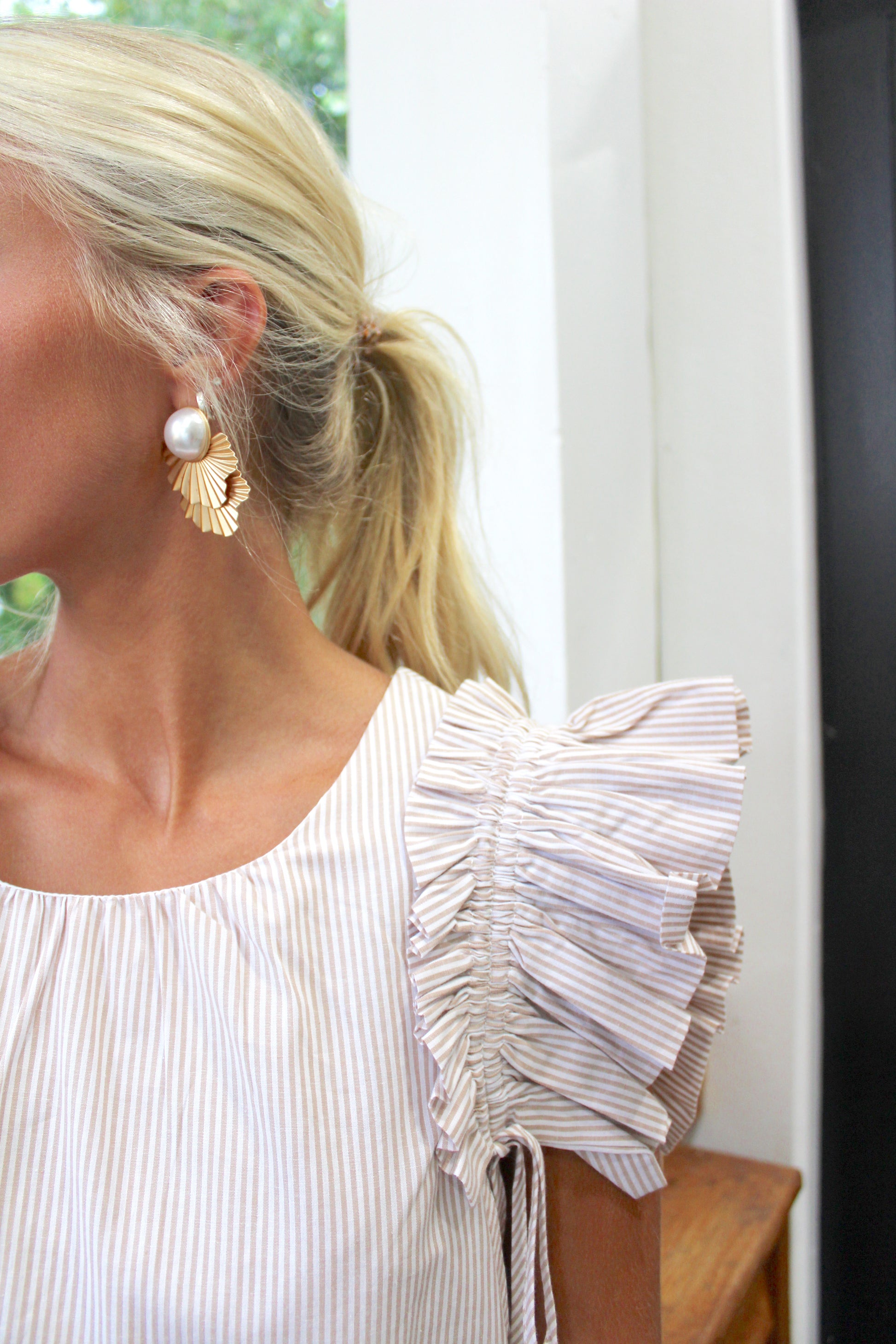 Pin Stripe Drawstring Top