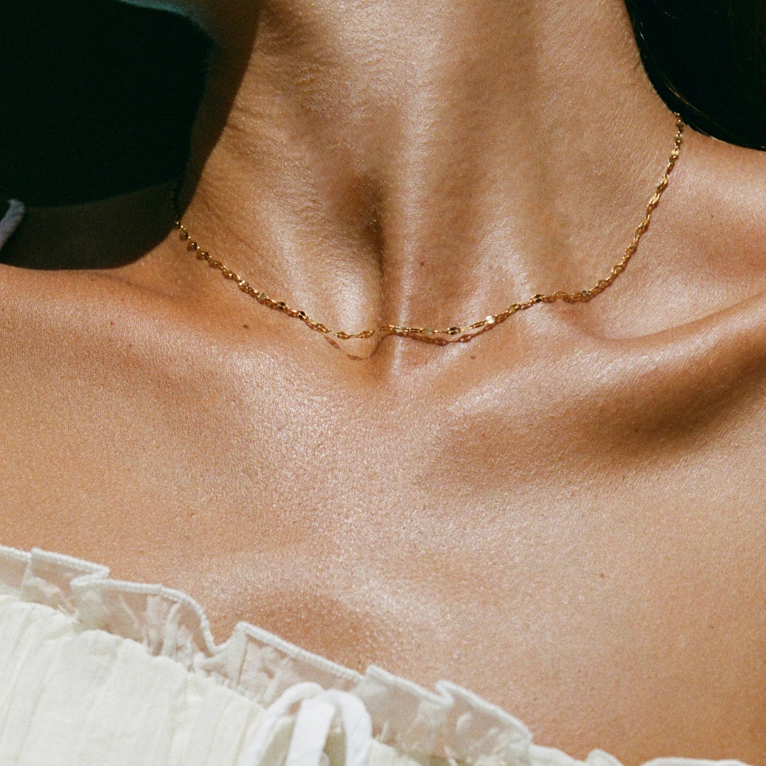 A golden glow you can wear. The Sol necklace features our signature lip chain, catching the light with every move. Perfect alone or layered, it’s adjustable from 16–18 inches for the ideal fit. Details — Adjustable 16–18"